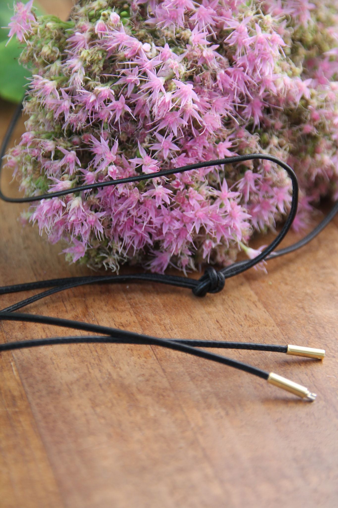 Die Details: Das Band ist aus genähtem Leder, lokal in Deutschland gefertigt. Länge 110 cm und 2.5 mm Breite. Der Verschluss ist vergoldet.