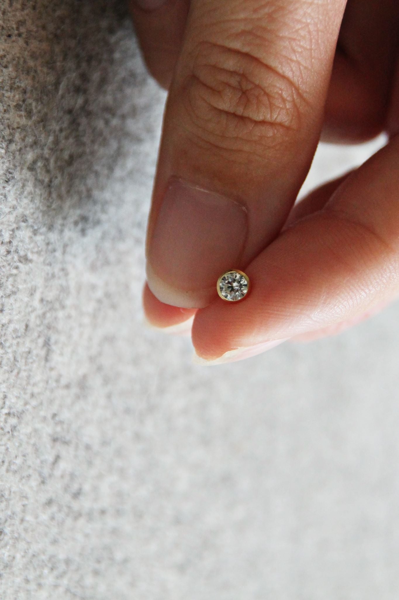 Das Model auf den Fotos trägt die mini Diamond Studs.
