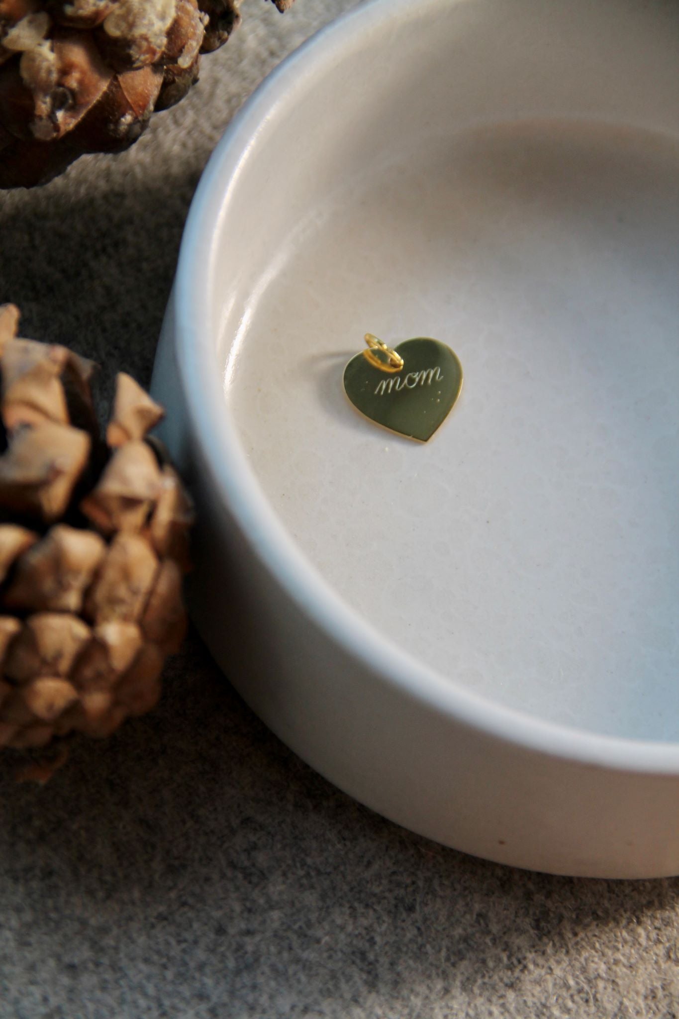 Anhänger: Das Herz hat einen Durchmesser von 14 mm und 0.6 mm Stärke. Vorne ist das Plättchen poliert, hinten matt. Wenn eine Gravur erwünscht ist, erfolgt diese automatisch auf der Vorderseite.