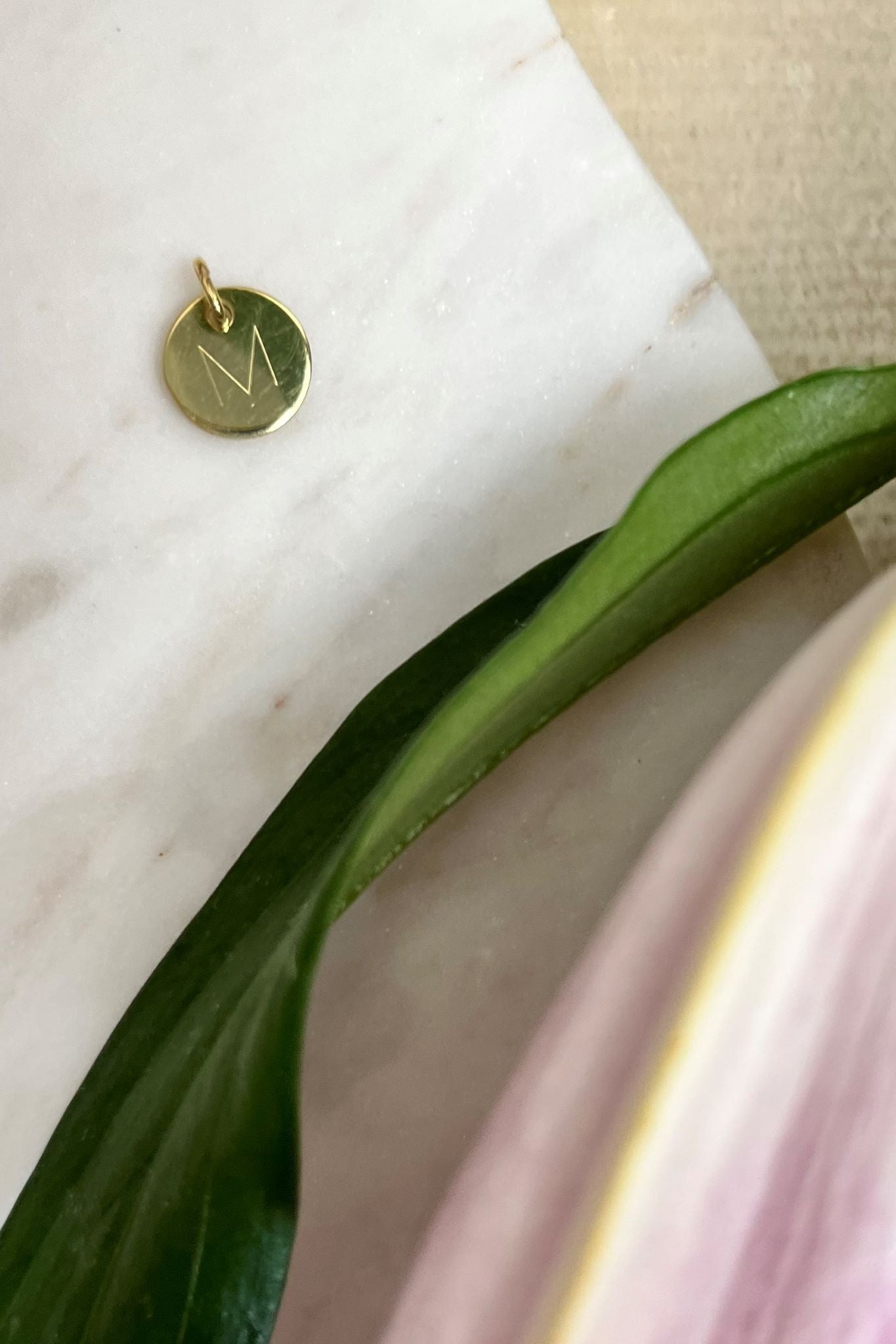 Anhänger: Das runde Plättchen hat einen Durchmesser von 10 mm und 1 mm Stärke. Die Stärke verleiht dem Anhänger eine besonders hochwertige Haptik. Vorne ist das Plättchen poliert, hinten matt. Die Gravur erfolgt automatisch auf der Vorderseite.