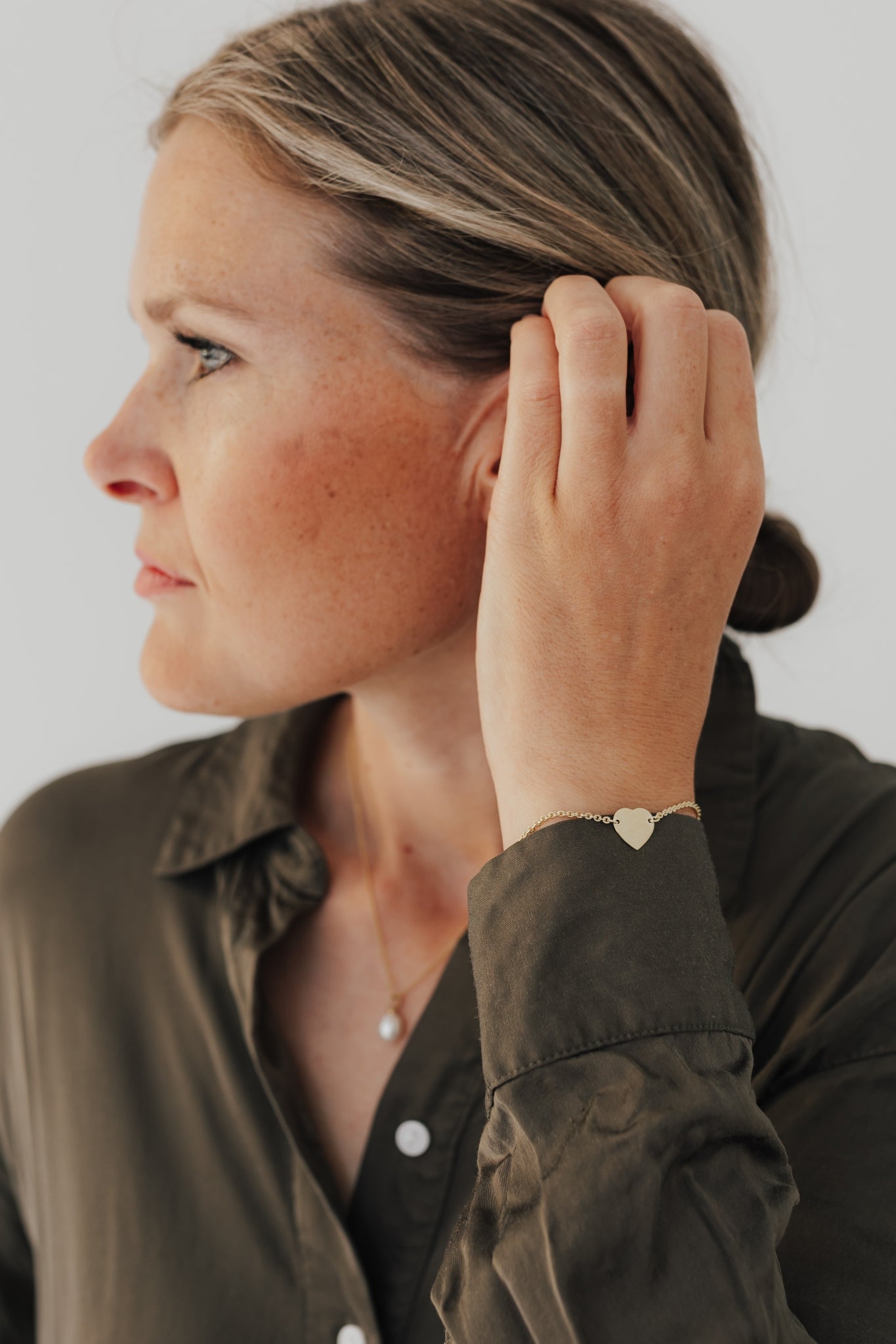 Willkommen bei unserem Armband HEART mit einem wunderschön eingefassten, filigranen Herz. Lasse den Namen Deines Herzensmenschen oder einen Schriftzug (wie zB Mom, Merci) auf das Plättchen gravieren oder trage es ganz einfach ohne Gravur. Schau Dir einmal unsere Produktbilder an und lass Dich inspirieren!