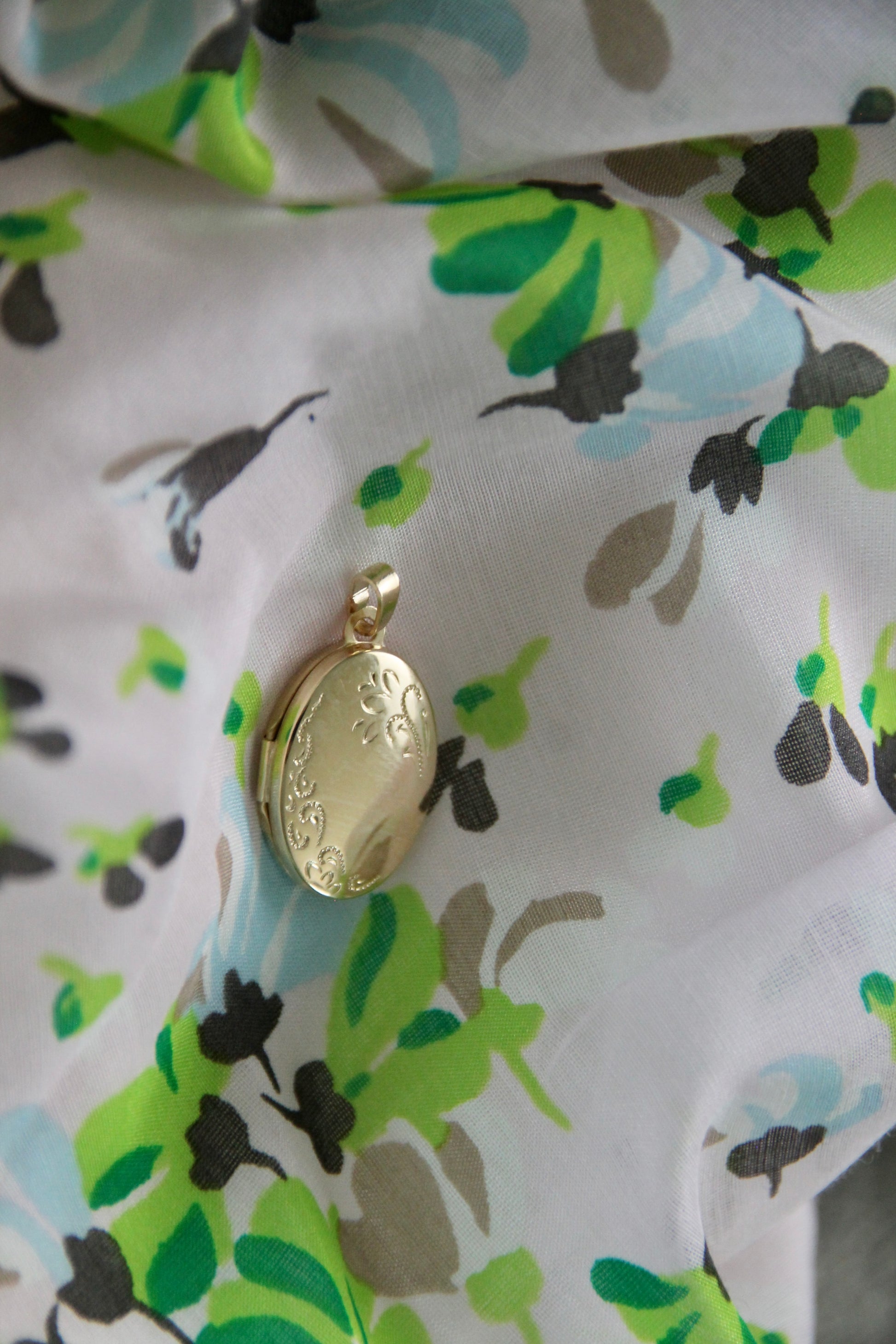 Das Medaillon ist hoch glänzend und hat ein verspieltes, florales Muster auf der Vorderseite. Es lässt sich leicht öffnen, Innen können links und rechts Fotos eingefügt werden. So kannst Du Bilder von Deinen Herzensmenschen immer bei Dir tragen. Der Anhänger ist zu all unseren Ketten kombinierbar.