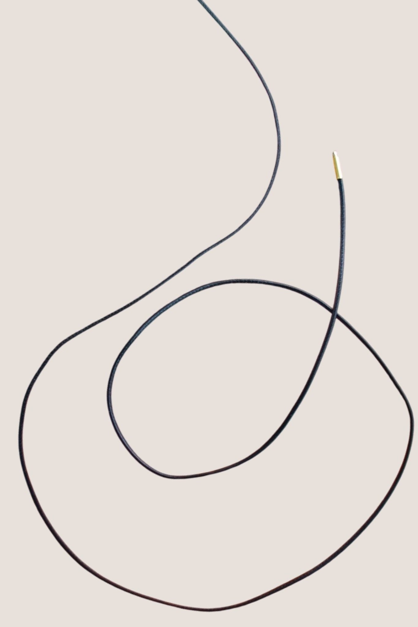 Das Lederband: Das Band ist aus genähtem Leder, lokal in Deutschland gefertigt. Länge 110 cm und 2.5 mm Breite. Farben: schwarz oder braun.
